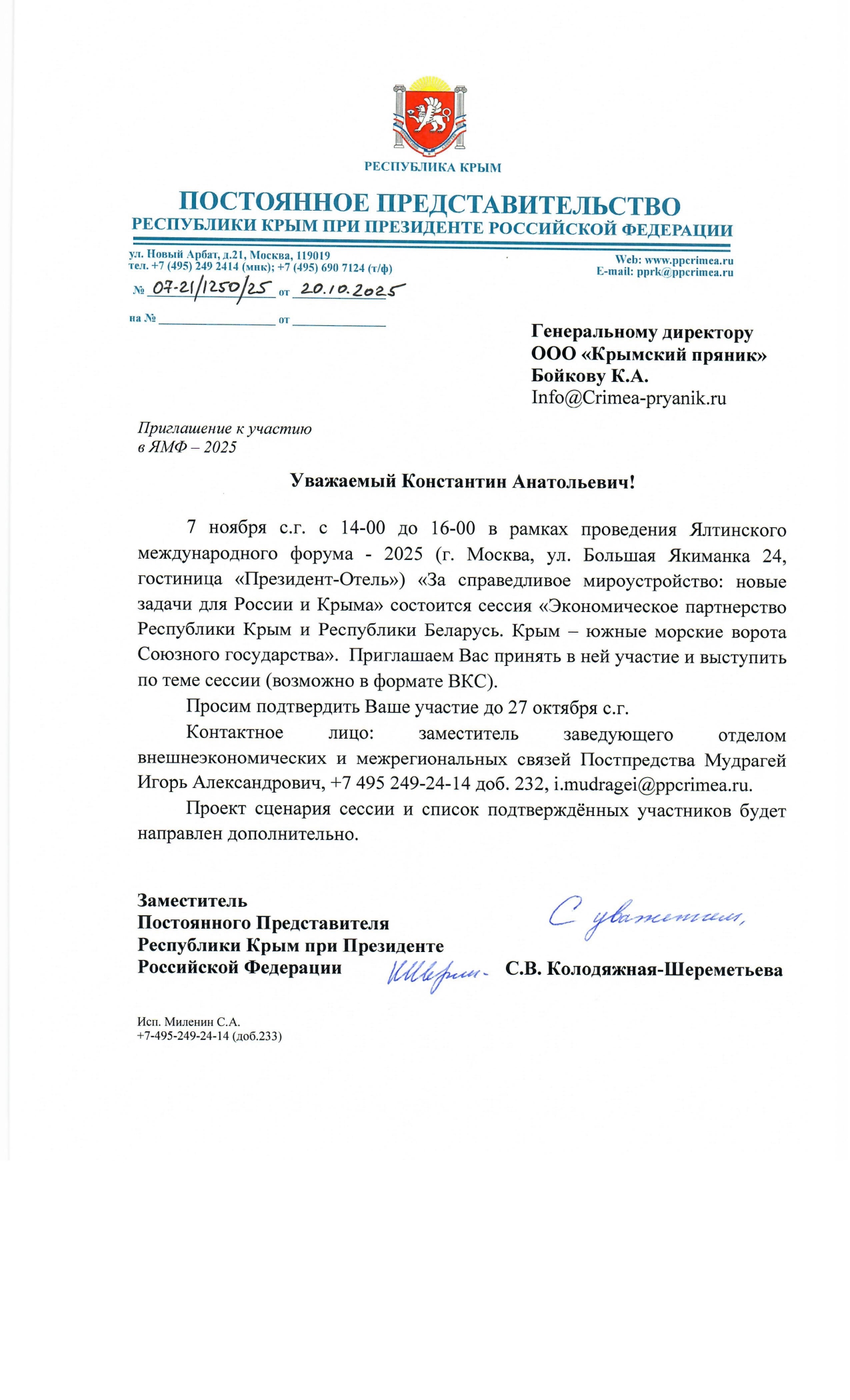 Уважаемые друзья! Наш Руководитель Бойков К.А. получил приглашение от Мурадова Георгия Львовича, Заместителя Председателя Совета Министров Республики Крым – Постоянного Представителя Республики Крым при Президенте РФ, принять участие и выступить на Ялтинском международном форуме-24, который будет проходить в г. Москве 6-7 ноября 2024 г.